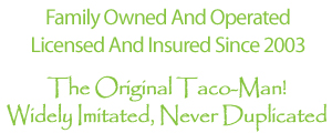 The Original Taco-Man! takes care of all the cooking so you can spend valuable time socializing with friends, family or business associates. We also provide affordable full service catering options for every budget!